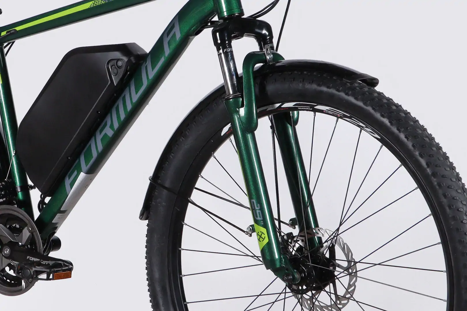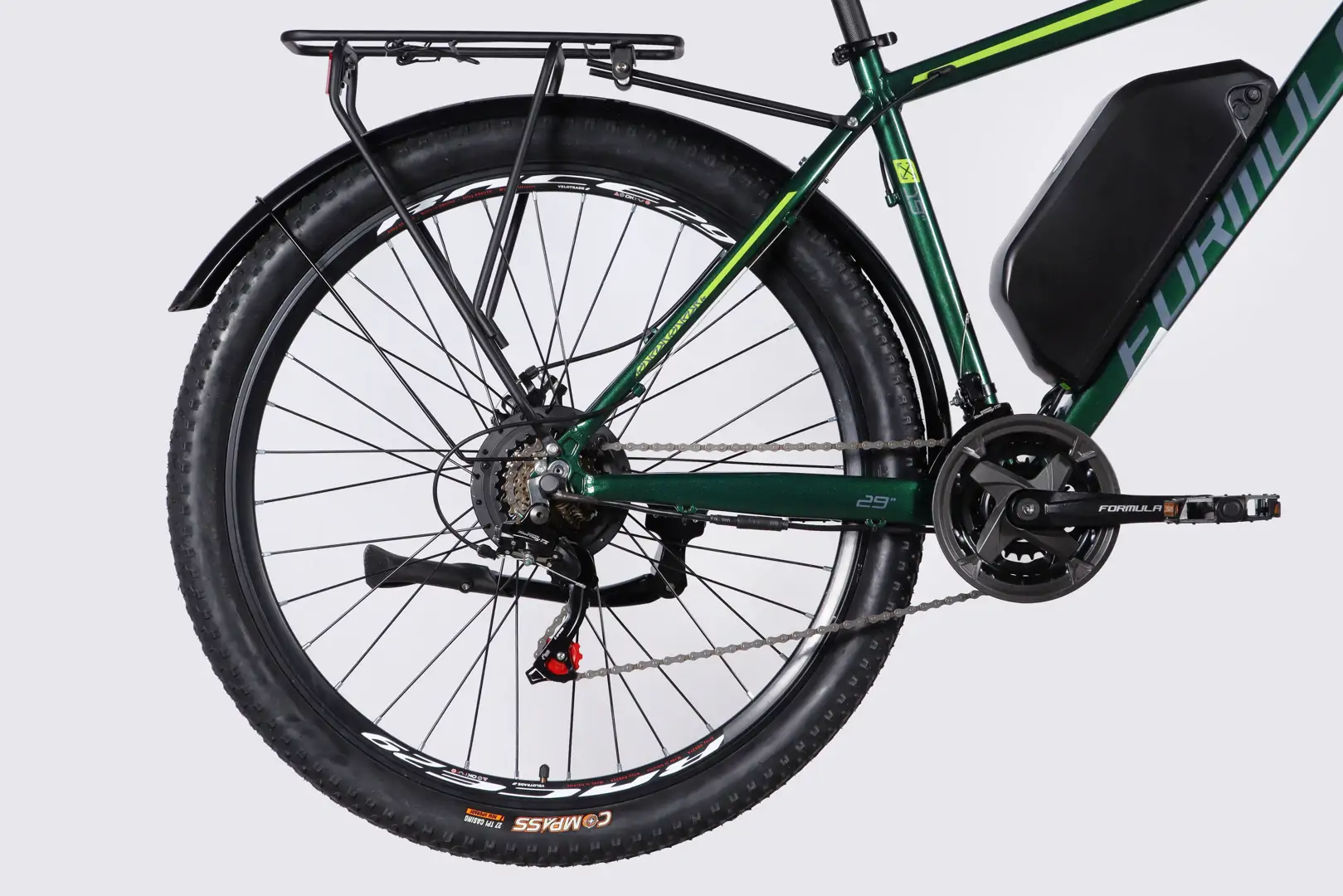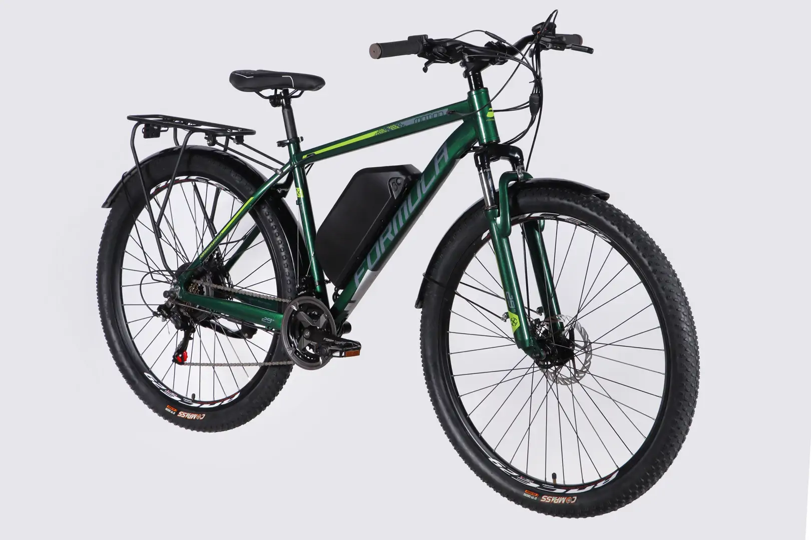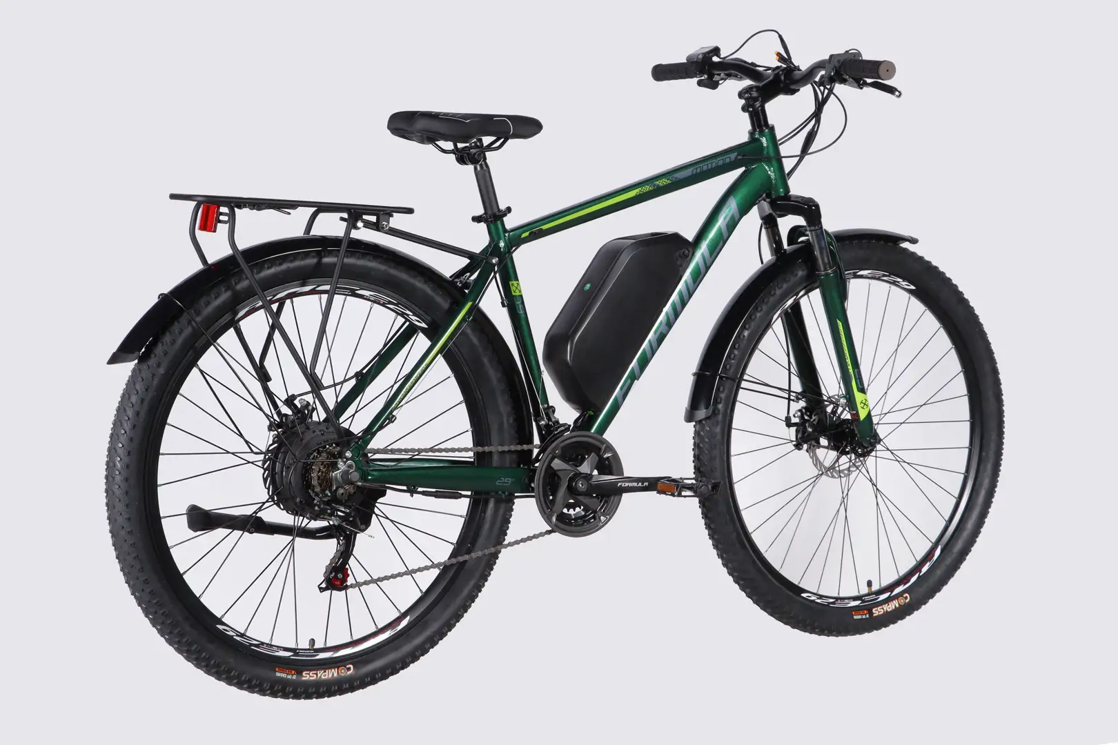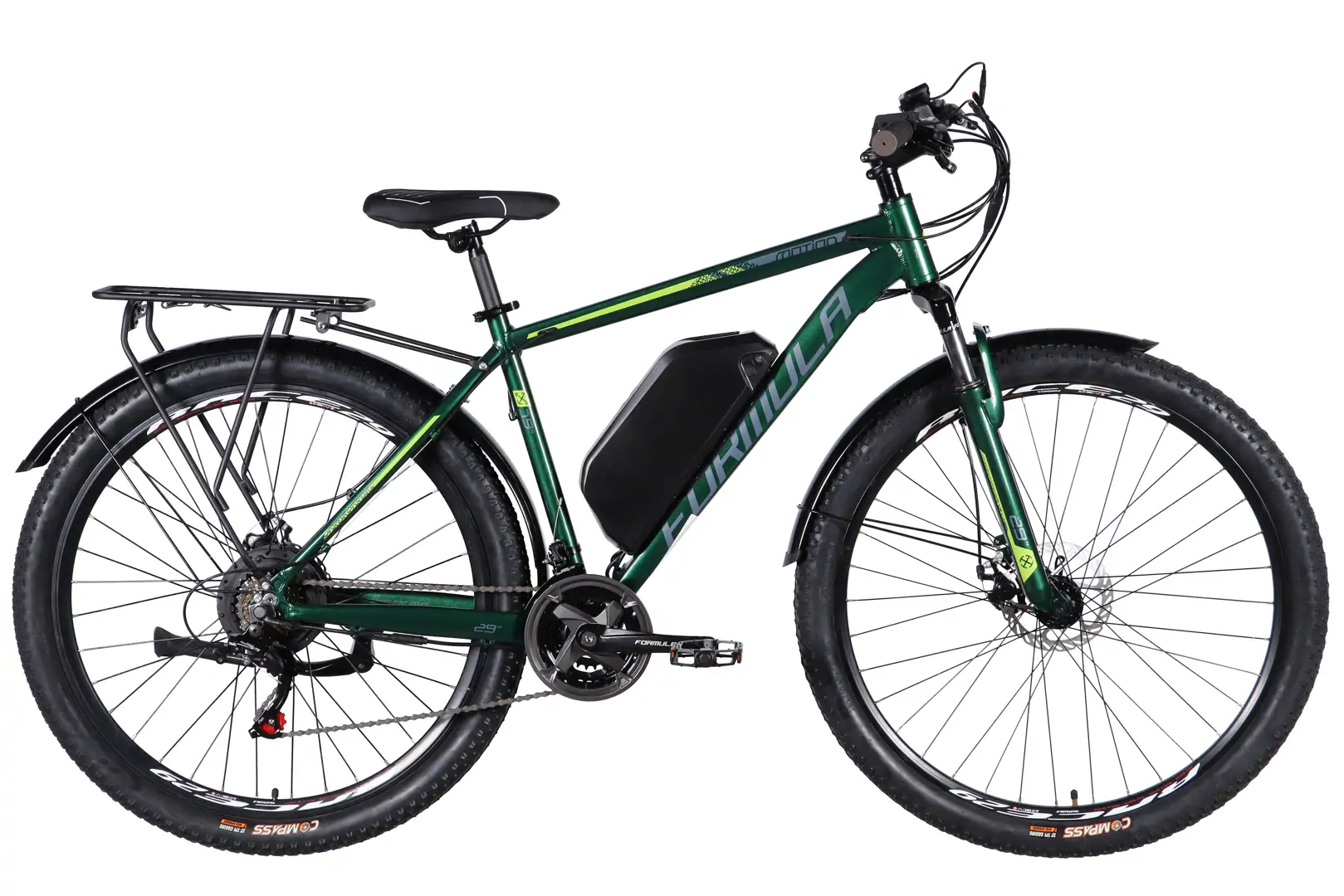 Електровелосипед Formula eMOTION PLUS 29″ рама-19″ алюмінієва полегшена задній мотор 48 B 500 Вт 15 А*г з асистентом зелено-сірий